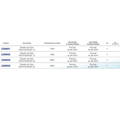 - Modelo: Gerador de Cloro com Wi-Fi GENESIS 15.